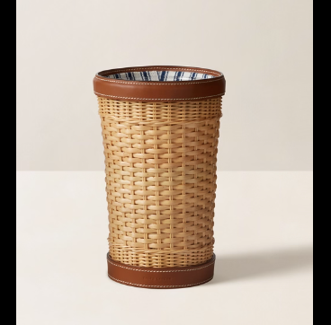 Inspired by the casual sophistication of Ralph Lauren’s restaurant in Paris, the Bailey vase combines woven rattan with supple leather trim and ticking stripes.
