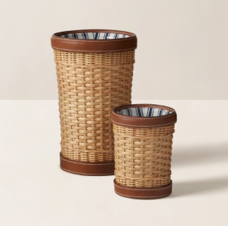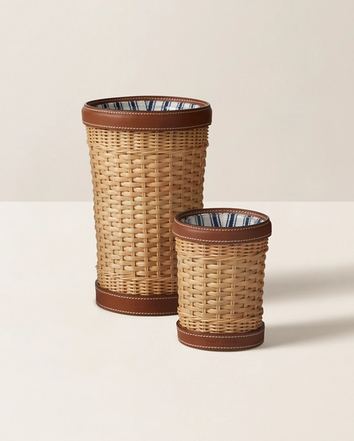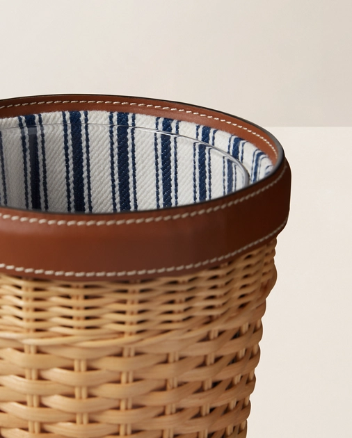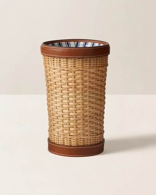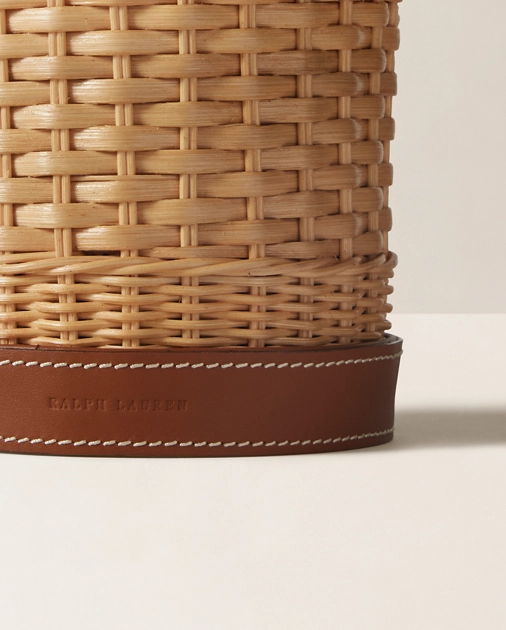 Inspired by the casual sophistication of Ralph Lauren’s restaurant in Paris, the Bailey vase combines woven rattan with supple leather trim and ticking stripes.