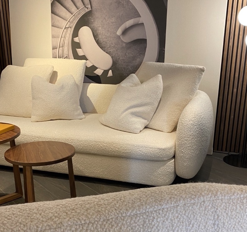 An essential trend for the past few years, curly wool remains at the top of the list for 2025. With its textured, comforting feel, it adorns sofas, chairs, and cushions, adding a touch of understated luxury. Paired with curved furniture, it creates an enveloping and undeniably modern atmosphere.