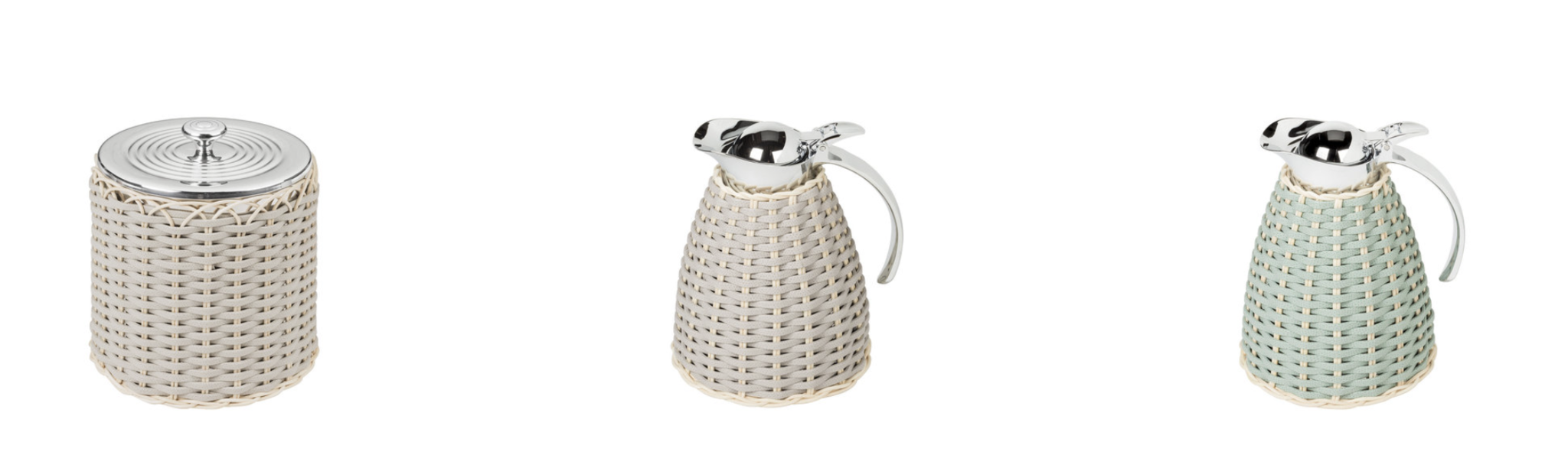 We are pleased to present to you a resolutely modern line of GioBagnara kitchen accessories, now available in natural woven rattan with a choice of GioBagnara printed calf leathers representing a beautiful and almost unlimited color palette at Segraeti La Table.