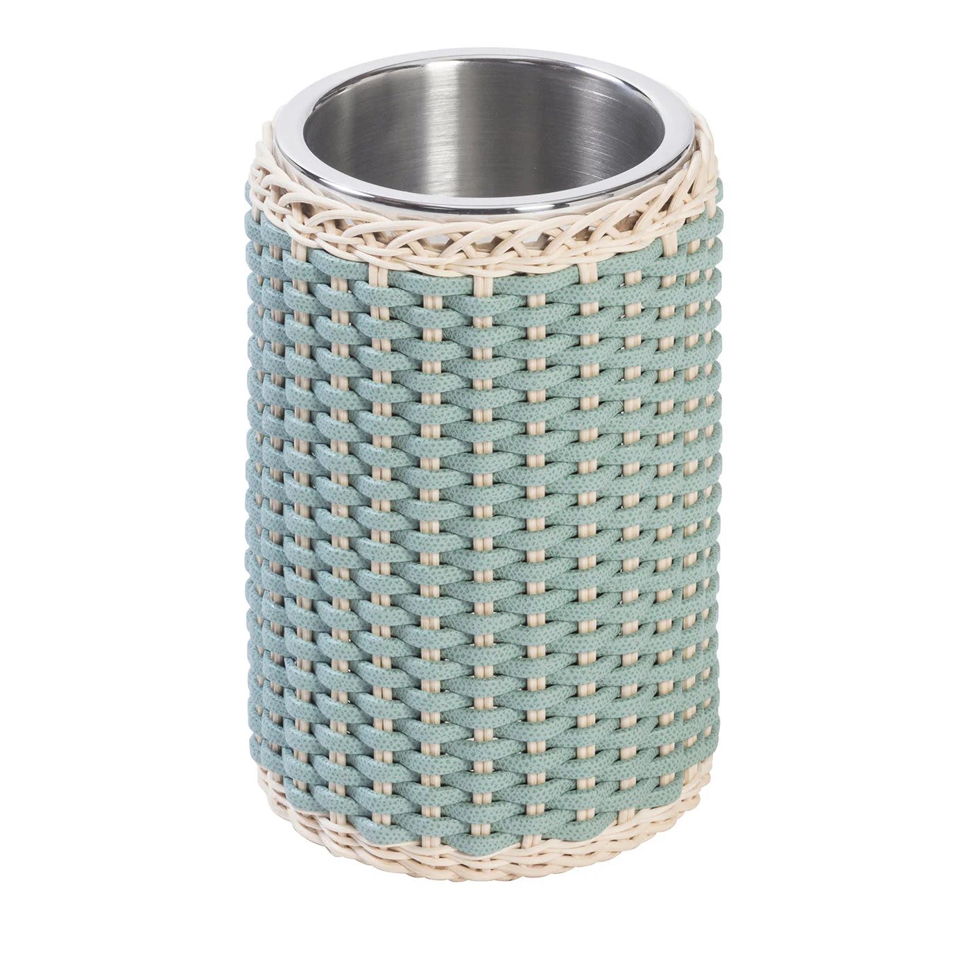 Wine cooler in Golf Sky woven leather and natural rattan for elegant serving
