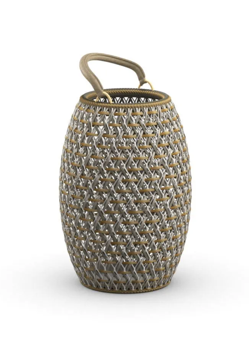 DALA M lantern by DEDON in Monaco at Segraeti Monte-Carlo. Luxury outdoor lighting in woven fiber Ø34x47 cm, elegant and durable.