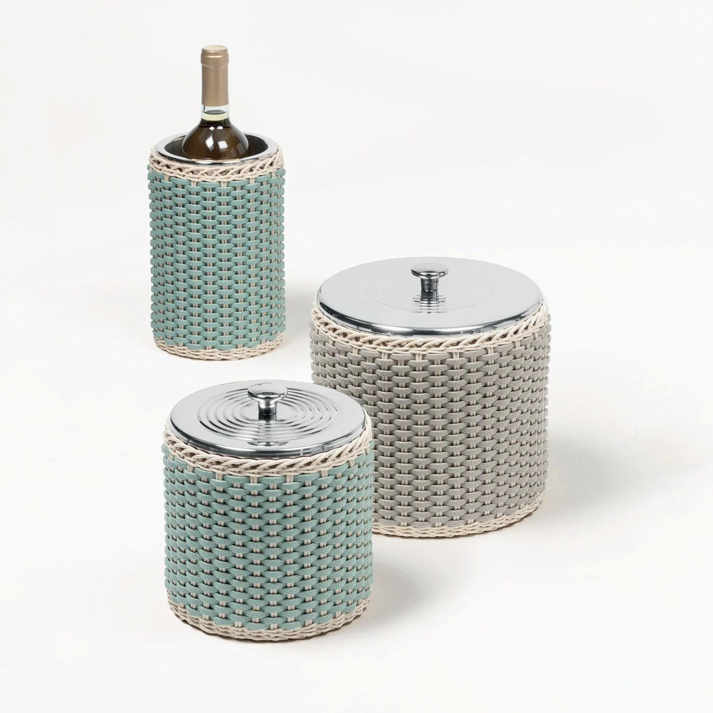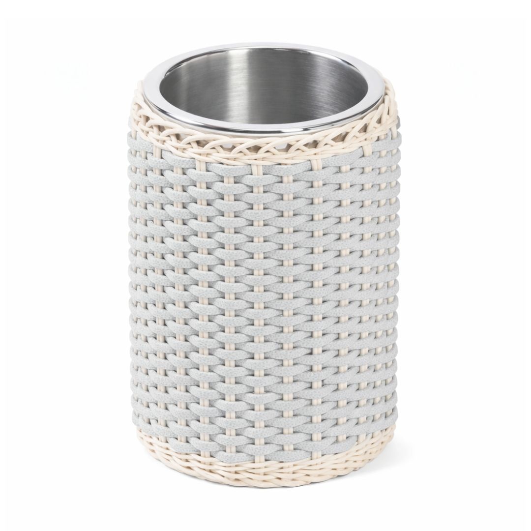 Wine cooler in Golf Ice woven leather and natural rattan for elegant serving