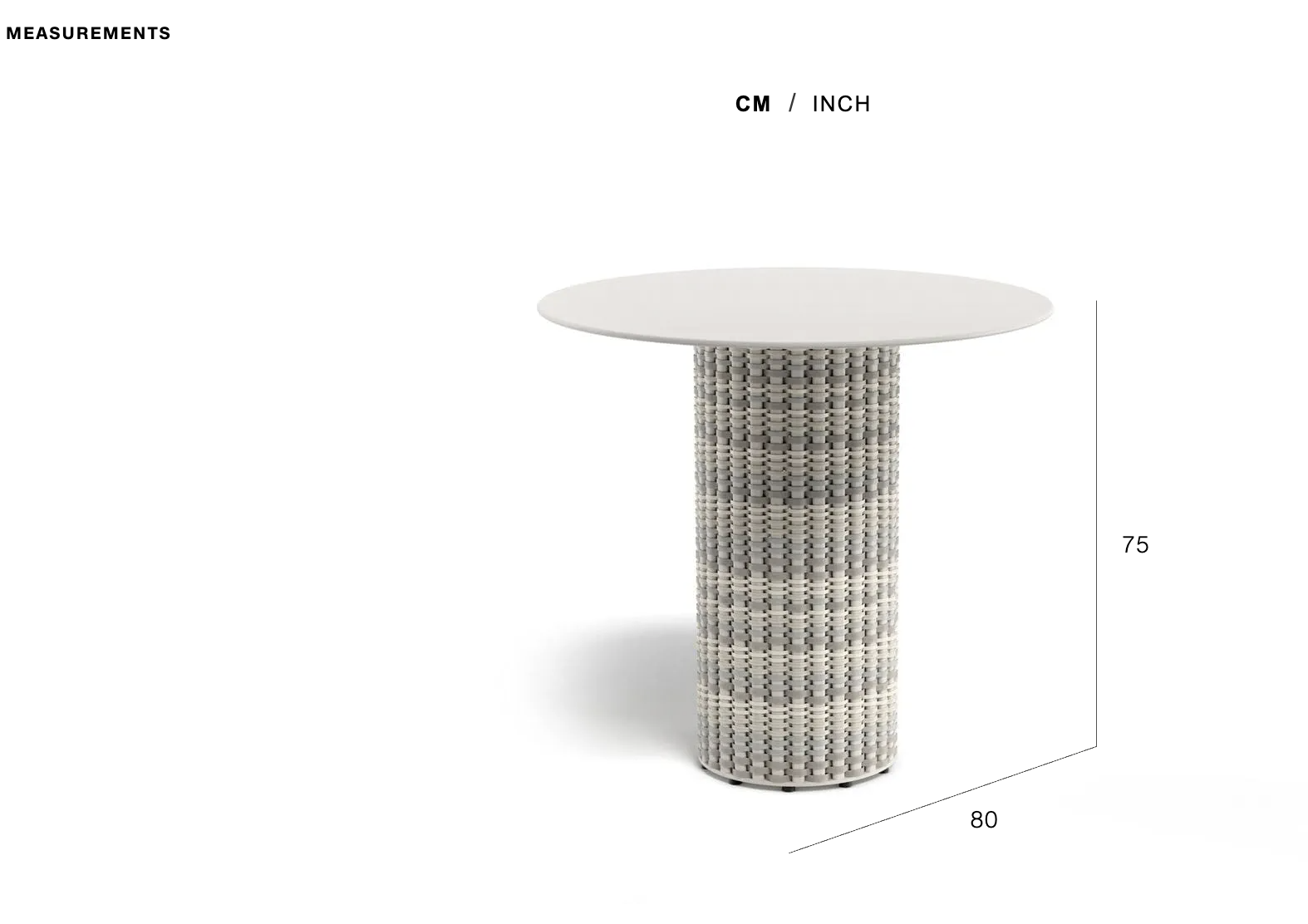 With dimensions of 80 cm in diameter and 75 cm in height, the MYMI table is perfectly proportioned for intimate outdoor dining, casual coffee moments, or elegant hospitality settings. Its compact yet generous format makes it a versatile choice for luxury outdoor living in Monaco, where every detail of a terrace or garden must combine comfort, performance, and design.
