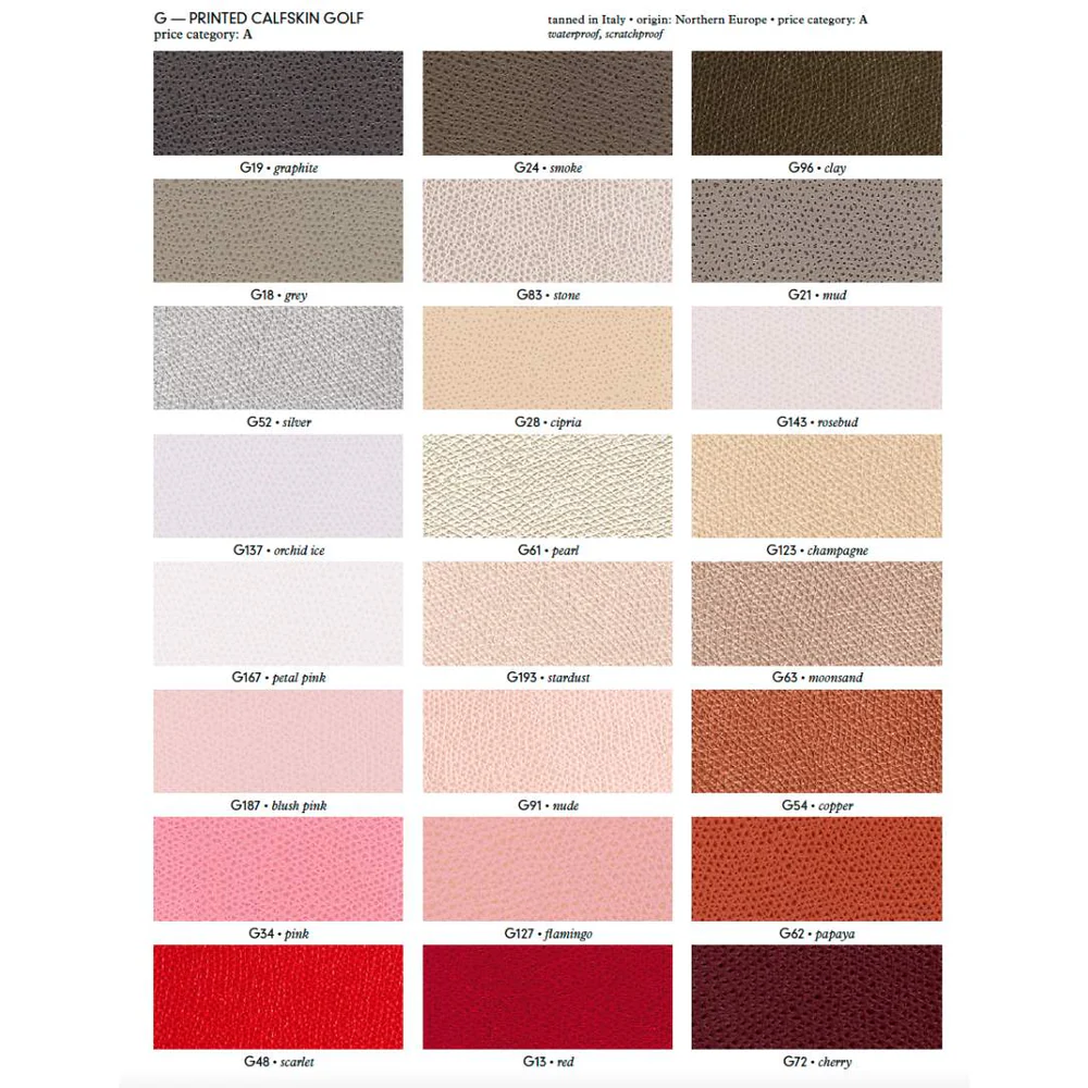 • Materials: Wood, calfskin leather (Golf), natural rattan