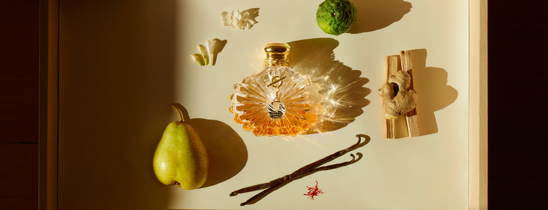 Le parfum s'ouvre sur des notes fraîches de bergamoteet de pamplemousse rose, suivies de notes de fleur d'oranger et de jasmin. Un cœur d'absolu de vanille et de benjoin renforce la sensation de soleil de ce parfum. Enfin, des notes chaudes de bois de santal et d'ambre gris créent une base élégante pour cette création joyeuse.