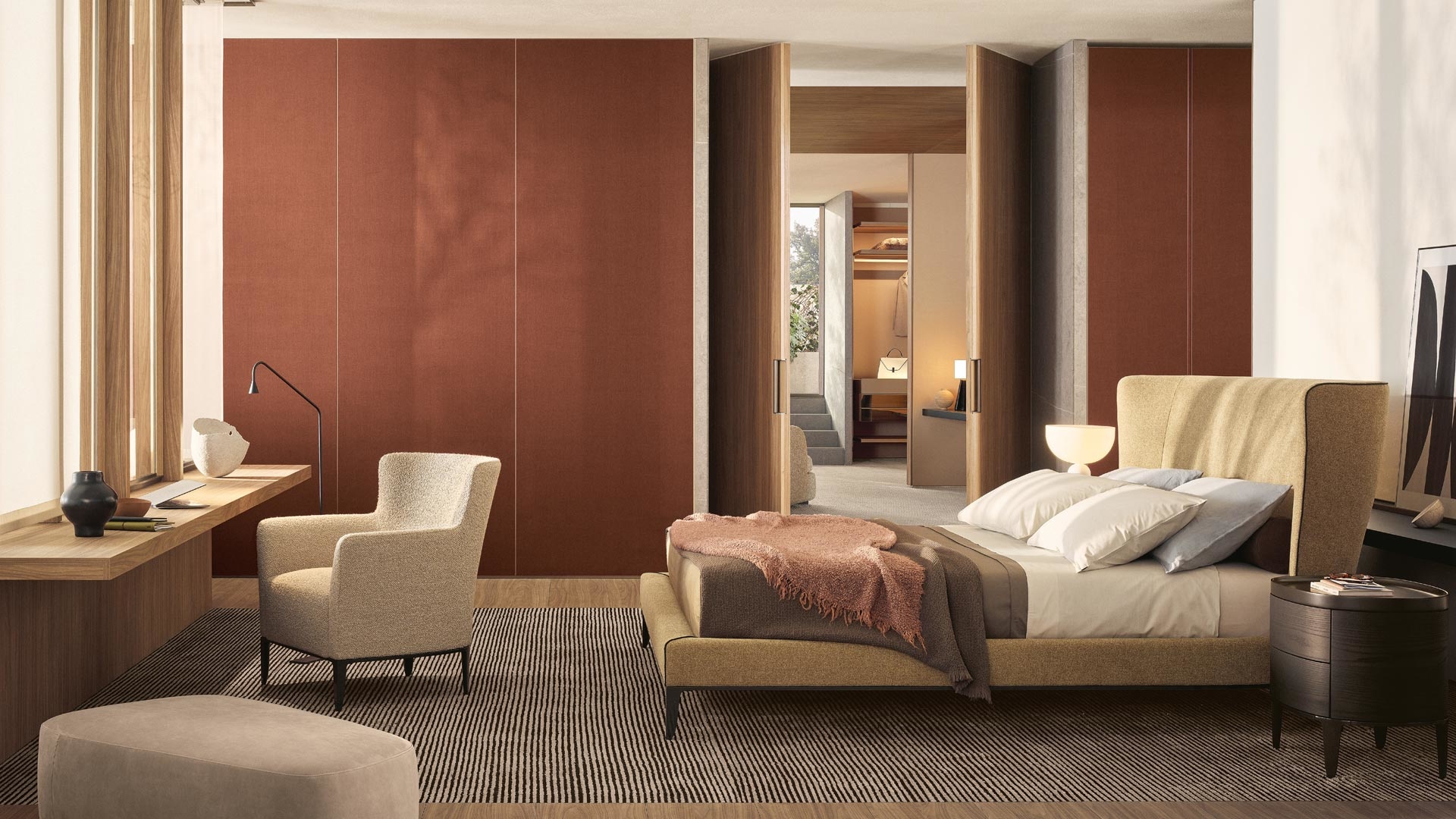 Lors du choix de l’emplacement du lit, il est important de réfléchir à la décoration du mur en face et de ne pas placer le lit devant une porte ou une fenêtre. Le mieux est d’opter pour des objets épurés et discrets pour ne pas surcharger la vue dès le réveil. Pour les formes et le design, les courbes douces et arrondies sont recommandées. Les dressing fermés avec rideau ou portes coulissantes sont de mise afin de ne pas encombrer visuellement la pièce.