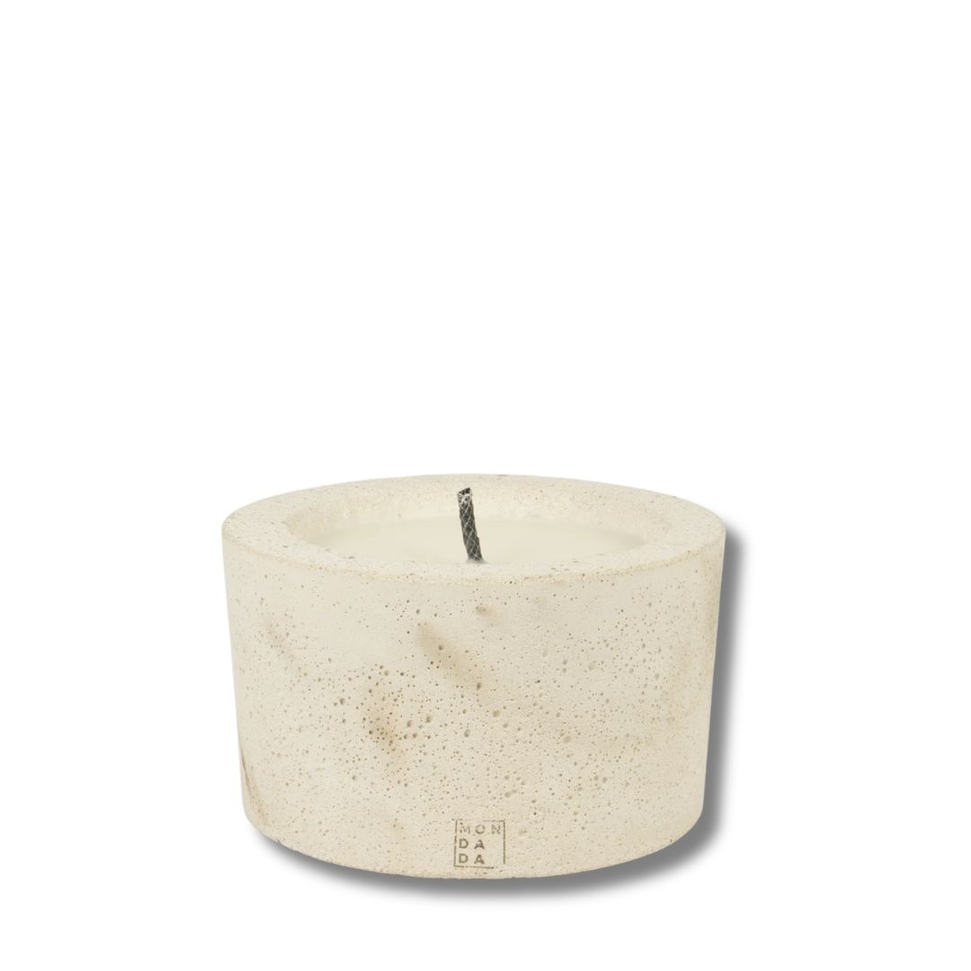 Bougie artisanale en béton compacte pour table et terrasse extérieure haut de gamme