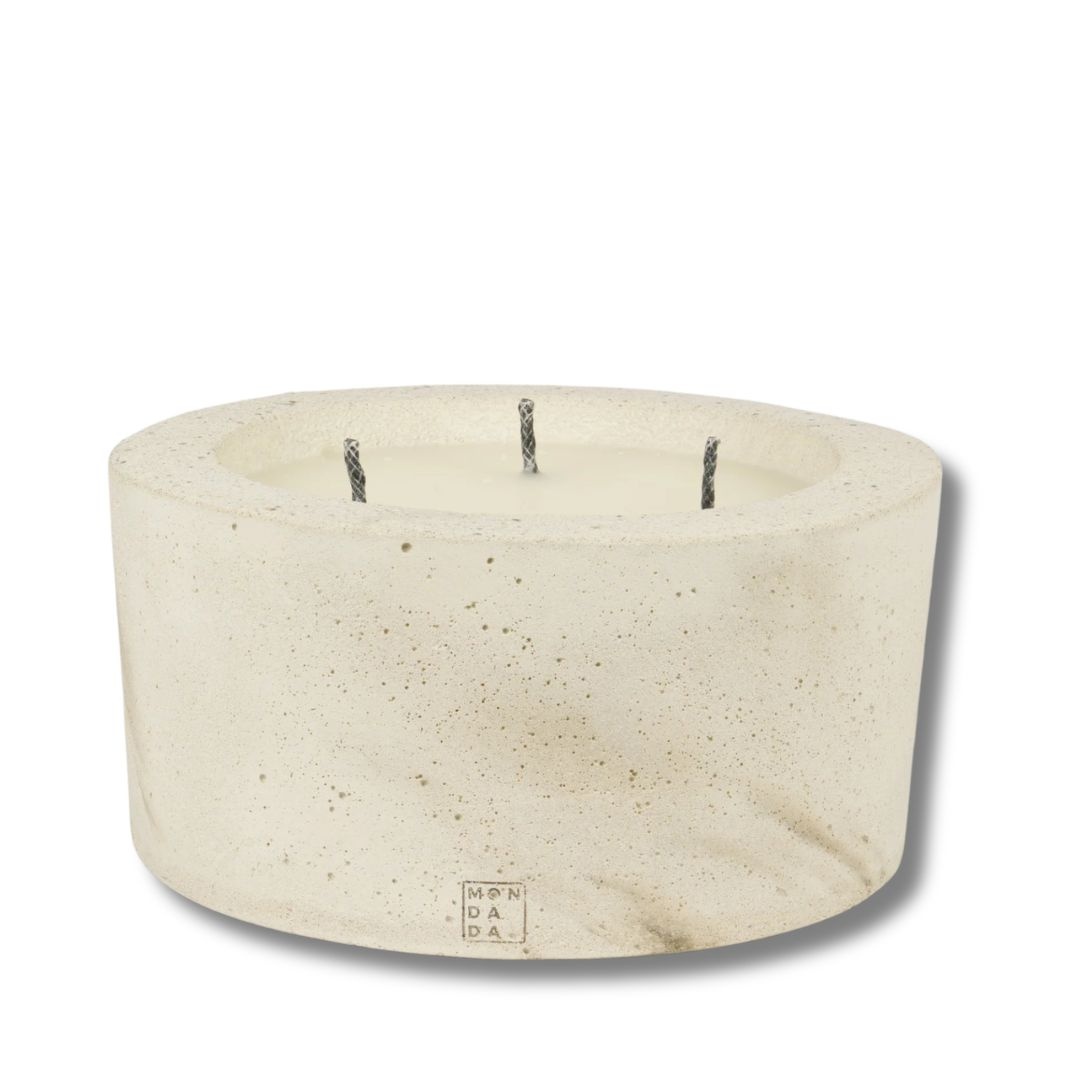 Bougie artisanale en béton avec 3 mèches pour terrasse et table extérieure haut de gamme