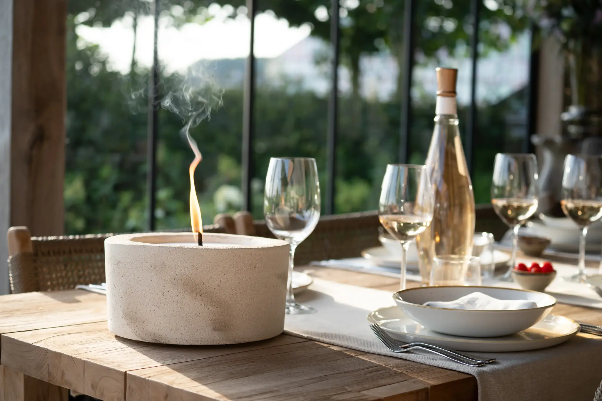 Bougie d’extérieur Urban Table Three Écru à Monaco – Bougie outdoor design | Segraeti Monte-Carlo