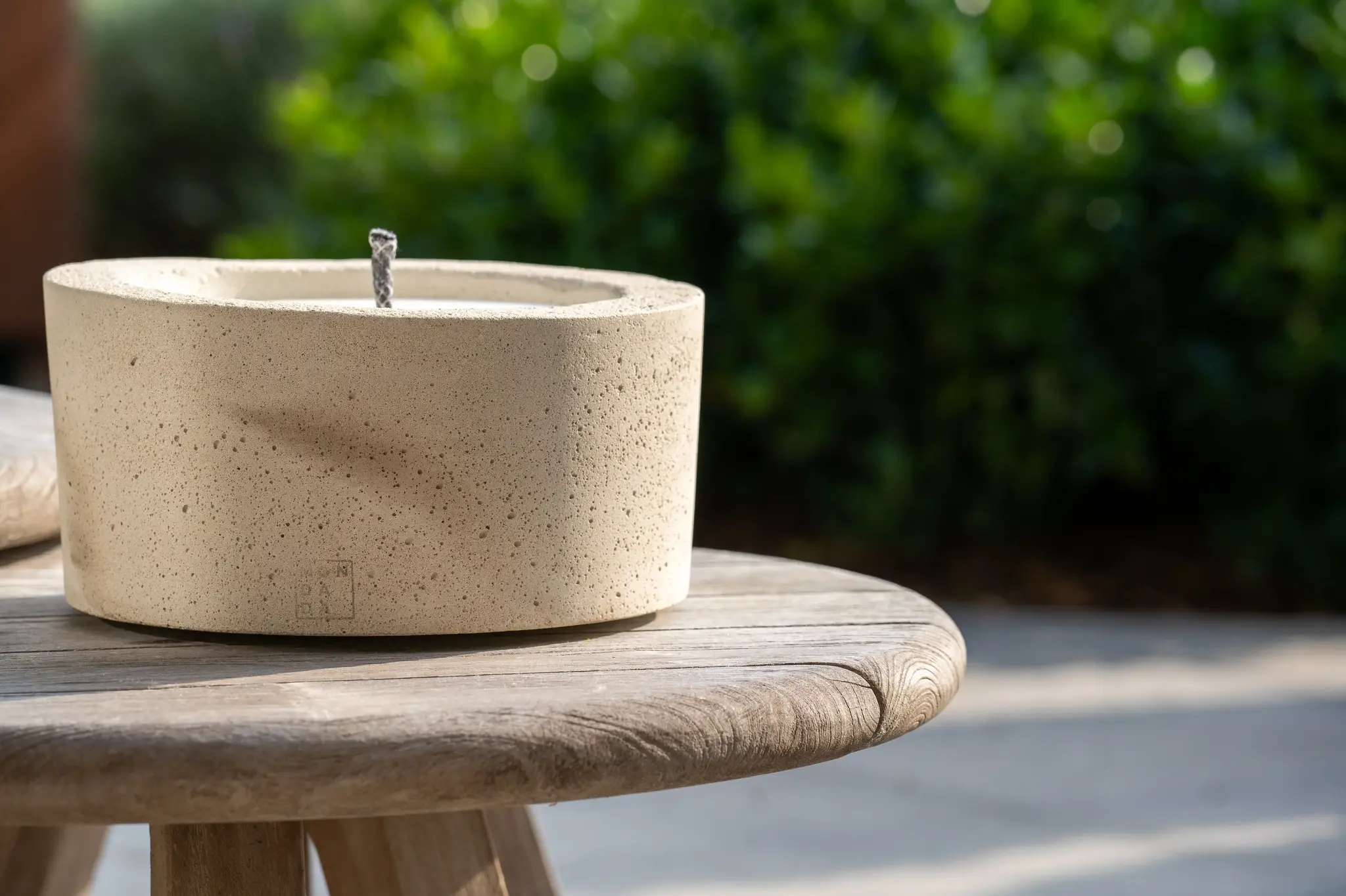 Bougie Urban Table Three à Monaco chez Segraeti Monte-Carlo. Bougie béton 3 mèches, design outdoor élégant et résistant.