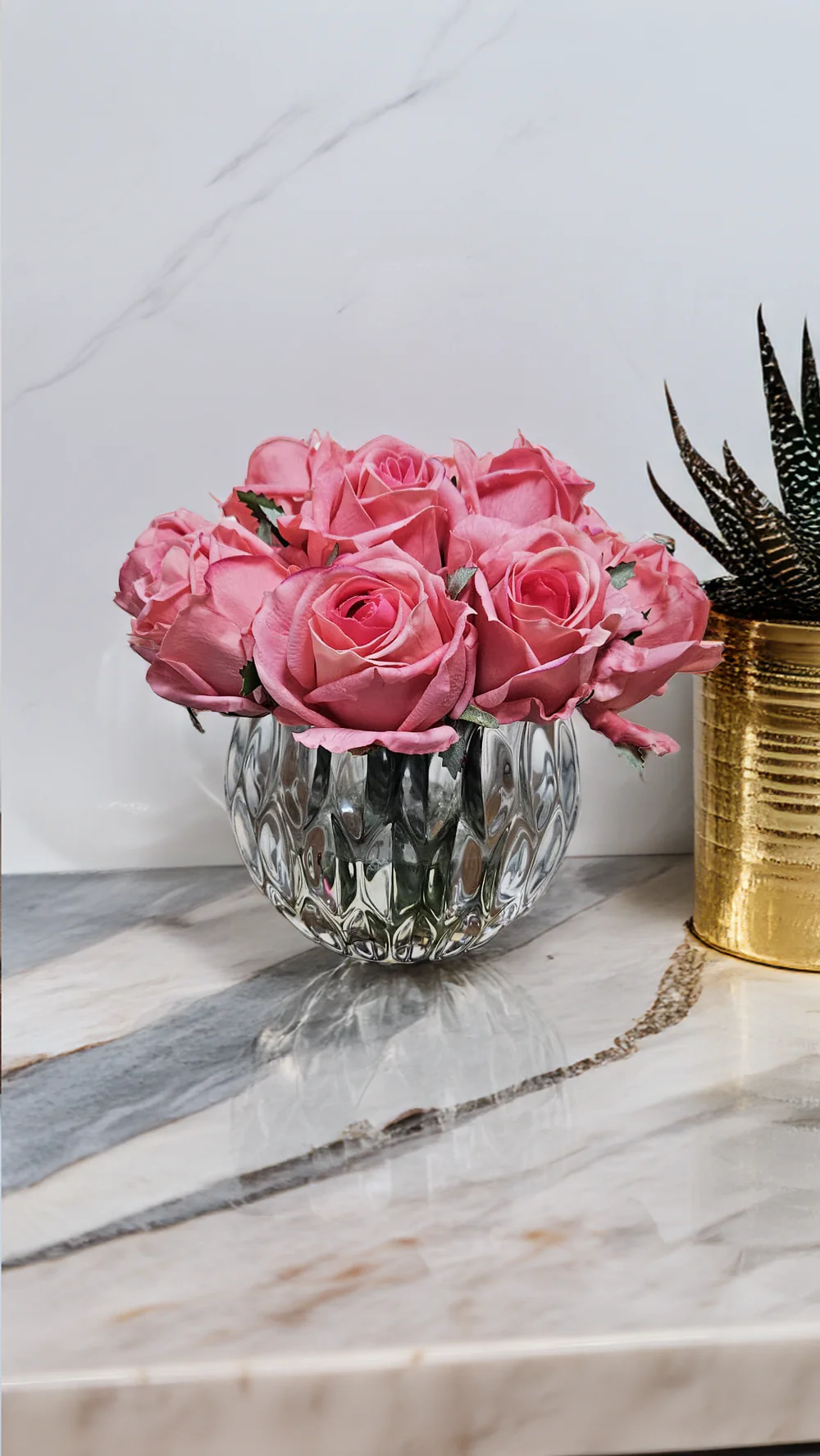 Le Bouquet Boutons de Roses Côte Noire est composé de boutons de roses méticuleusement façonnés à la main, chacun utilisant un revêtement naturel spécial pour leur donner un toucher et une apparence réalistes. Les pétales sont imprégnés de fragrances raffinées, garantissant une expérience olfactive agréable et durable. Le bouquet est présenté dans un vase en cristal rond, scellé dans un gel pour préserver sa fraîcheur et sa beauté.