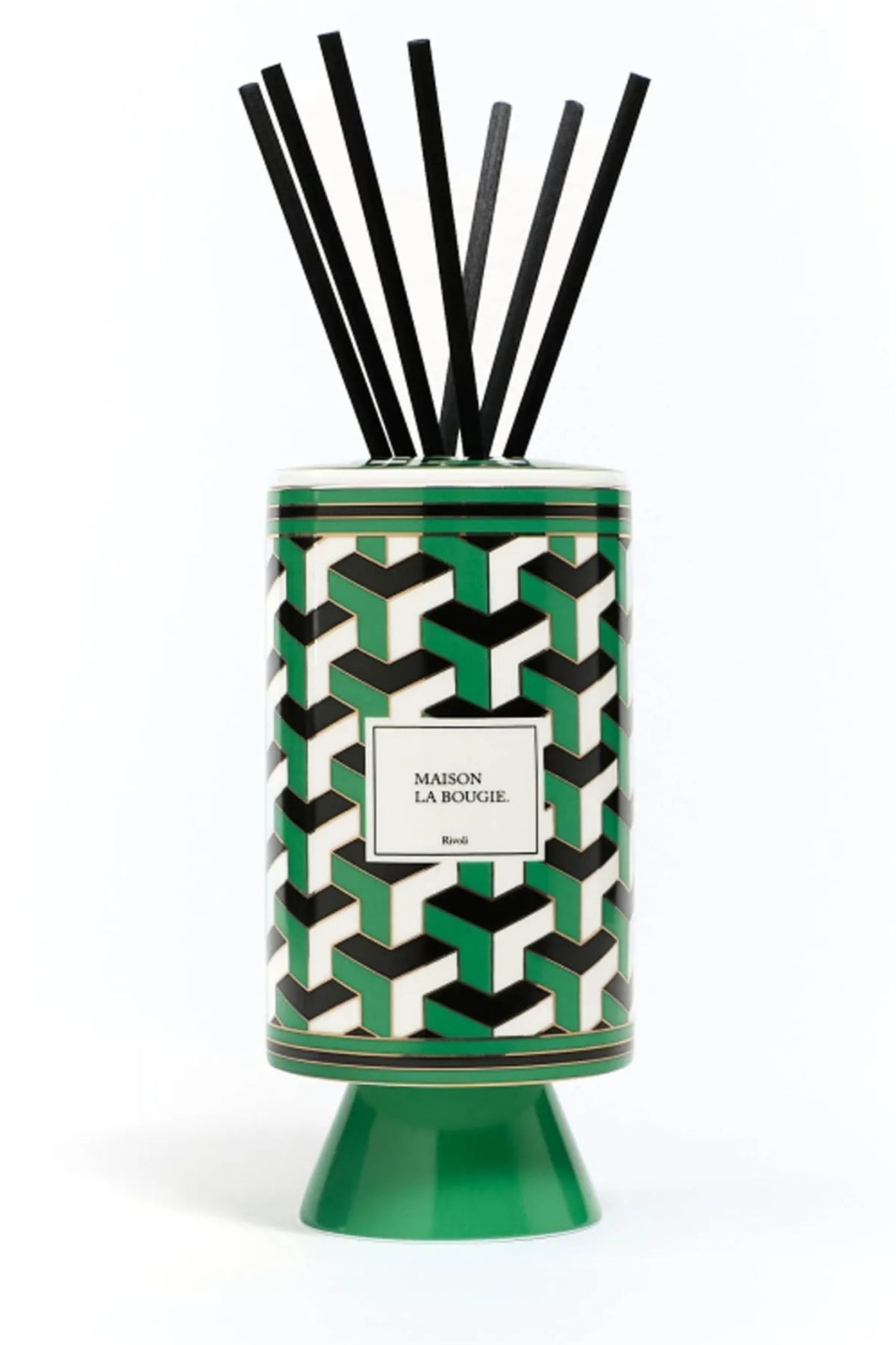 Le Rivoli Diffuser Oud Sublime de Maison La Bougie diffuse un parfum raffiné et sophistiqué qui transforme votre espace en un havre de bien-être. Ses notes profondes et boisées de gurjum, cypriol, oud, rose, géranium, violette, patchouli, safran et bois de Gaiac créent une atmosphère chaleureuse et luxueuse.