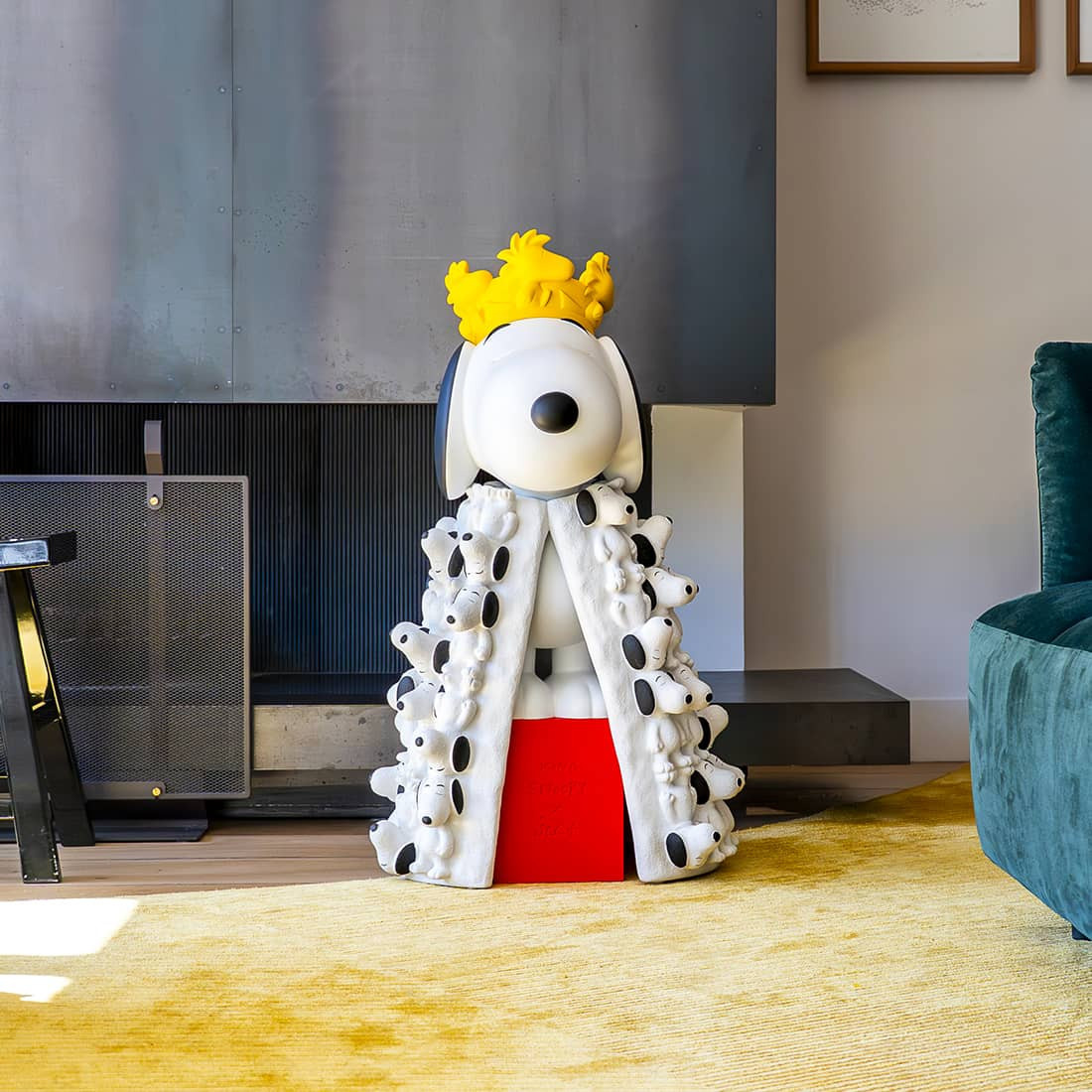 Couronné roi et vêtu d’un manteau orné de ses propres effigies, Snoopy rend hommage au manteau iconique créé par Castelbajac en 1989. Sa couronne composée de Woodstock symbolise l’amitié, la joie et l’esprit libre de l’univers Peanuts.