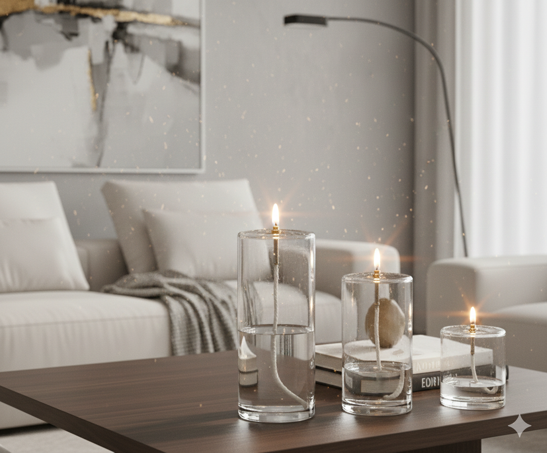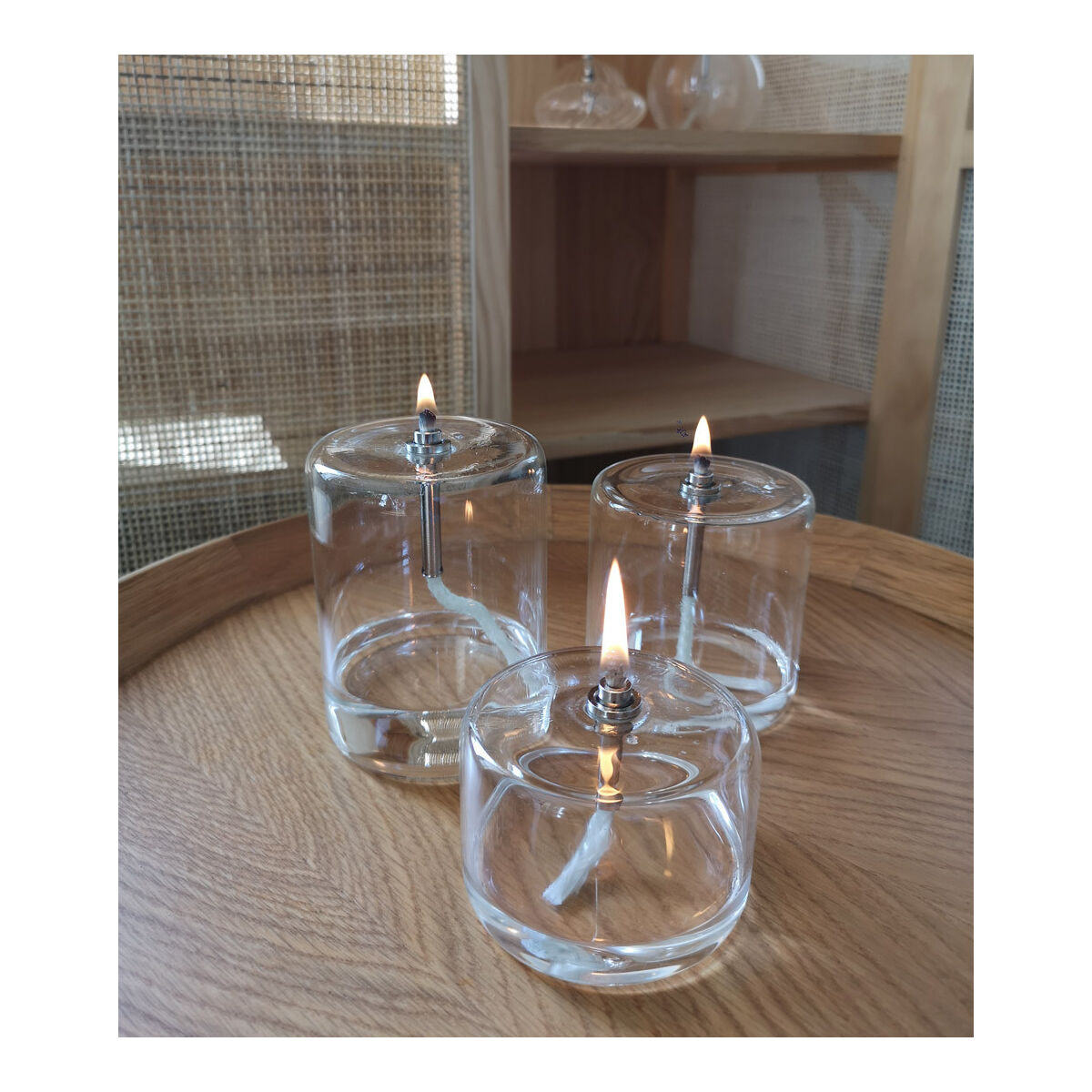 Lampe à Huile Cylindre en Verre Transparent – H.10 cm