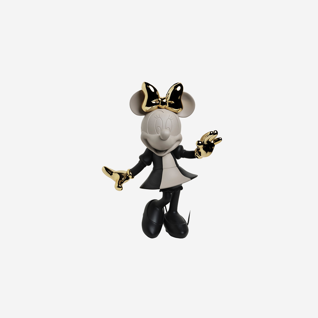 Sculpture Minnie by Kelly Small 31 cm en édition ouverte, signée Kelly Hoppen. Minnie revisitée en ABS avec finition mate et chromée, teintes noir, taupe et or. Objet décoratif contemporain et iconique.