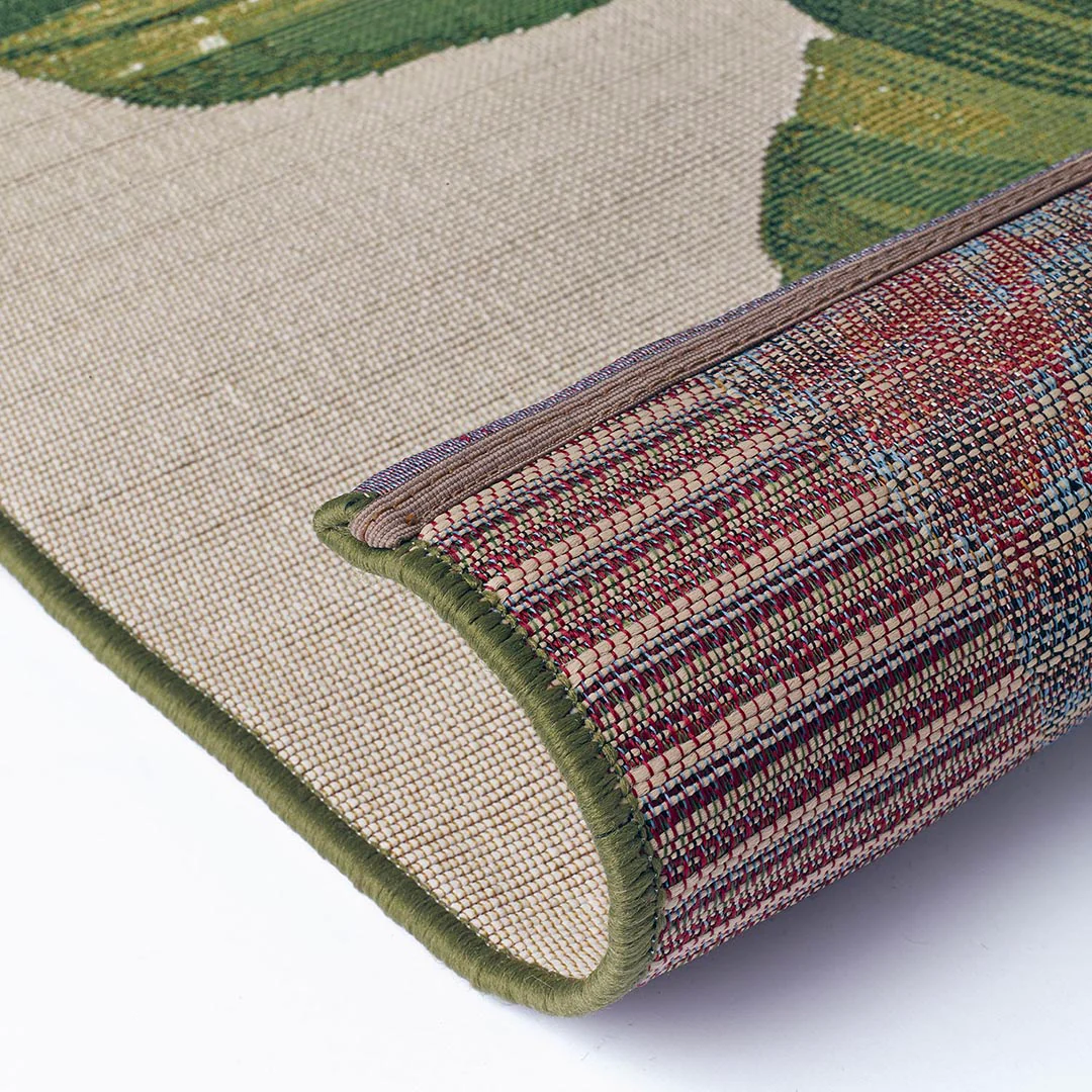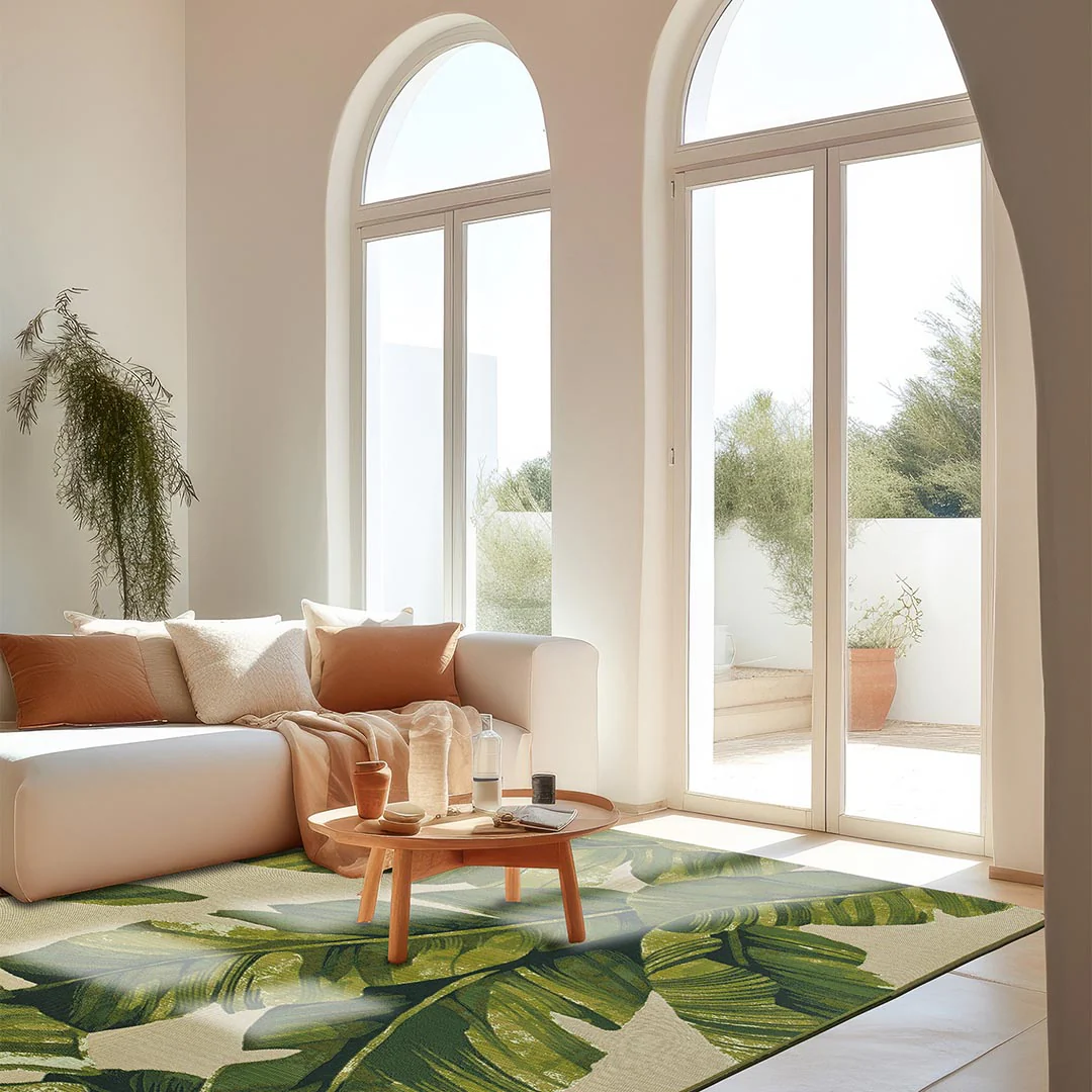 Doux au toucher, il invite à marcher pieds nus et à profiter pleinement de chaque instant. Son motif végétal apporte fraîcheur et dynamisme, tout en s’intégrant harmonieusement dans des décors modernes ou plus naturels.